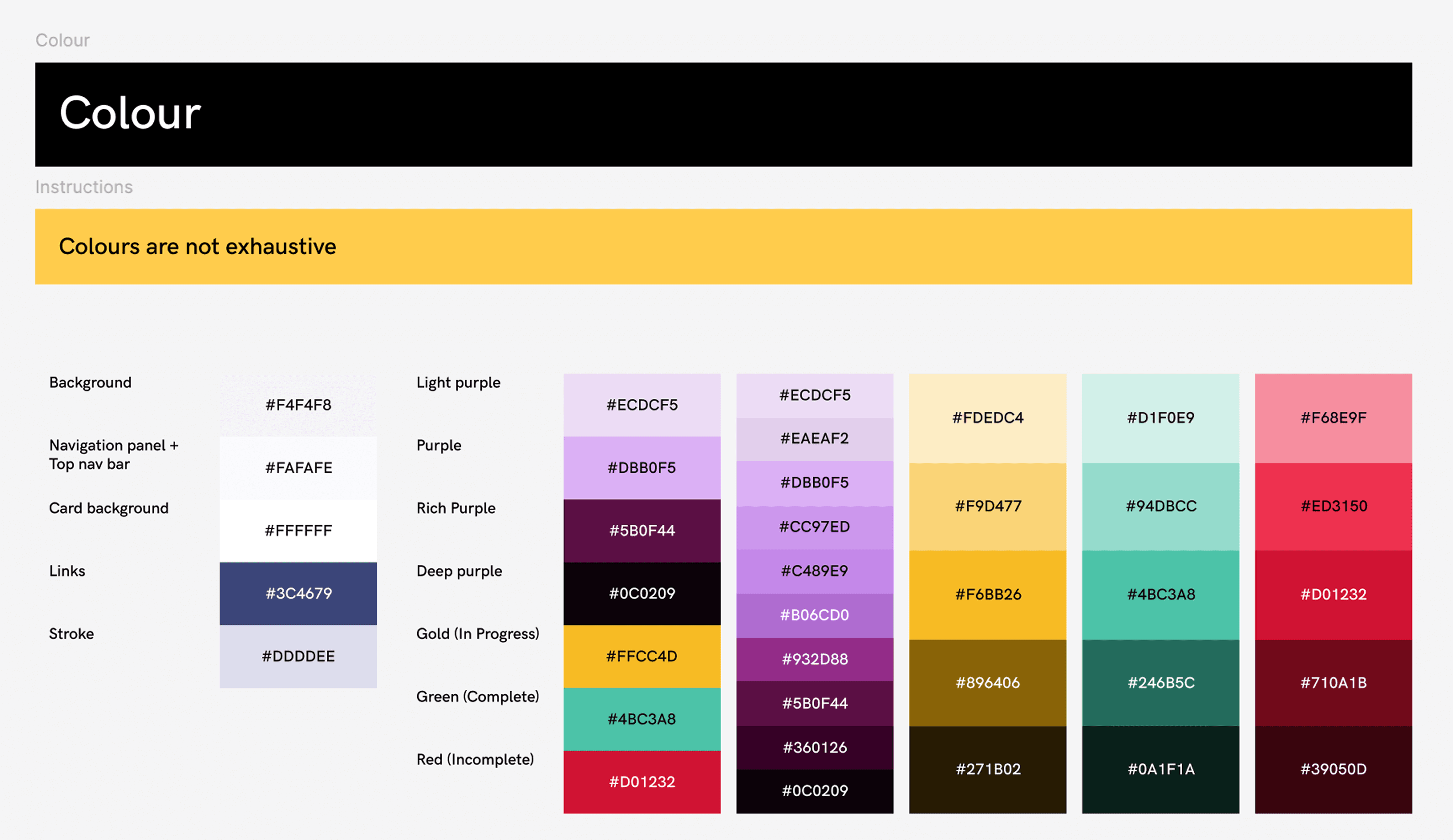 We followed the organisation's style guide for colour and typography, but created our own system for components (shown below).